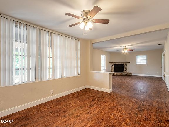 There's lots to enjoy in this spacious 4 bedroom, 2 bath home in South Daytona. Located on a quiet street and is convenient to shopping, the beach and 1-4 for all the Orlando entertainment. Plenty of space to entertain in the family room which is just off the kitchen and offers a wood burning fireplace. The kitchen has a nice breakfast bar and lots of cabinets. Bonus room could be a dining room, office or sitting room. Backyard is wooded and backs up to a park. Roof new in March of 2022. HVAC installed August 2023. Bedrooms 3 and 4 have brand new carpet. Don't miss this opportunity to make this delightful South Daytona residence your own!