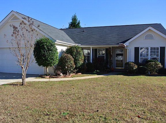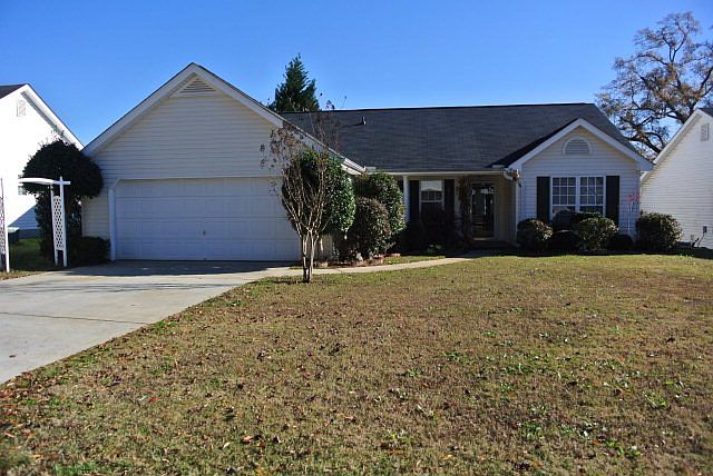 Don't miss out on this charming 3BR/2BA ranch home in a prime location. From the rocking chair front porch enter on to attractive tile flooring in all main areas, excluding the bedrooms that are embellished with laminate southern pecan wood floors. An open and split floor plan with contemporary colors is perfect for entertaining and includes a dining room and great room. The corner fireplace provides warmth and coziness. The bright and cheery galley kitchen features a separate eat-in breakfast area and refrigerator stays. Across from the kitchen is the laundry room with washer and dryer remaining. The large master suite is private and boasts dual sinks, garden tub/separate shower and walk-in closet in master bathroom. Enjoy barbequing and gardening in a picturesque setting with a separate work shed/storage building and privacy fence. A retractable awning covers the back patio. Ample parking with double attached garage. Easy to show. Call now!!!