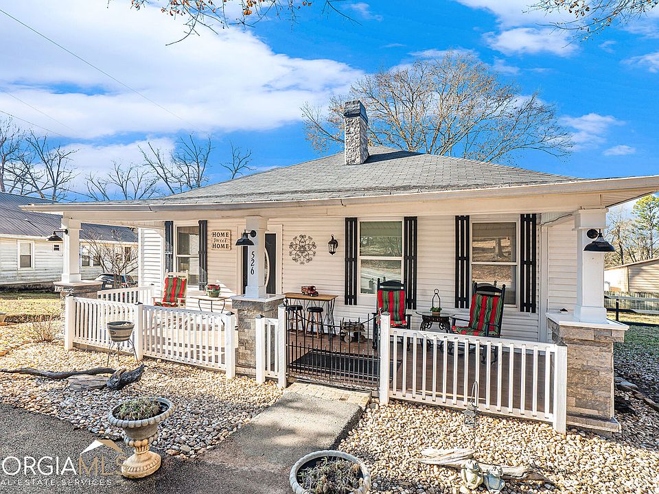 Conveniently located 12 minutes to I-75 and less than an hour to Atlanta, this charming 1930's home is perfect for anyone that loves traveling to the city while still enjoying the small town feel. Outside the home you will find more than enough parking and a welcoming covered front porch! Step into the main living space, you'll discover a beautifully updated fireplace with a seating area to enjoy family and friends in a comfortable abode. The dining room provides extra room for entertaining. Rustic decor wood has been added as accents throughout, including in the large master bedroom that is filled with natural light! The updated kitchen overlooks a substantial fenced in back yard, making it a safe and private space for pets and children to play. Other back yard features include a new covered patio with a concrete slab, storage shed, and fire pit area. Many improvements were made in 2019. A NEW roof, NEW water heater, and NEW kitchen appliances. Brand new air conditioning unit also added in May of 2022, and is still under warranty. Come visit this home today, you'll feel the history and love put into its design and transformation over the years.