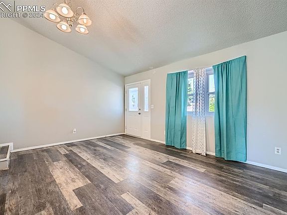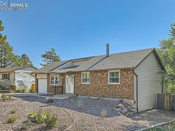 Beautiful ranch style home just minutes to Fort Carson! Eye-catching vinyl and brick siding, and easy care xeriscaped front yard. One car attached garage plus room for more vehicles and toys adjacent. Huge fenced backyard with storage shed with utility easement buffer behind the lot. This home is a ranch-style home with walk-out basement. Backyard access from the brand new wood deck and the walk-out basement. The interior was renovated about three years ago. The kitchen features new cabinets, new granite countertops, new LVT (luxury vinyl tile) flooring. All appliances included. The kitchen also features a pantry. The main level has three carpeted bedrooms, and the master has a large closet and bath adjoins. The basement has a beautiful brick wood-burning fireplace, rec-room, large storage room and the fourth bedroom. Laundry in basement (washer / dryer included). Electrical panel upgraded and air conditioning added for those warm summer days. Quiet, mature, treed neighborhood with easy access to Fort Carson and Highway 115 and I-25. Newer sewer cleanouts installed in the last couple of years. This home is move-in ready and fast closing possible.