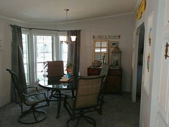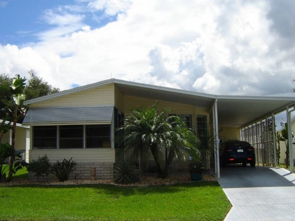 This lovely home sits on a spacious outer perimeter lot in a 55+ gated community in the heart of Polk County. Here you own your home but lease your lot and pay monthly lot rent. Recent updates include a new shingled roof and a new refrigerator/freezer in 2018, built-in dishwasher in 2014, painted walls in subdued tones, newer carpeting in the living/dining area and tile floors in the wet areas. The living area is open. A wonderful working kitchen is graced with a skylight for natural lighting, surface stove units and storage space in the center island, wall oven, lots of cabinets to store all of your kitchen wares, and a dining area with a bay window to invite additional light into the area. Adjacent to the cozy living room, there is a 10 12 raised 3-season, vinyl-windowed lanai that overlooks the main street and the connecting side streets within the park. The concrete driveway is long and can accommodate several vehicles. At the head of the carport is a 6 11 utility shed for additional storage. Behind the home is a lovely 11 16 patio that overlooks the spacious east-facing back yard, so it will be a great place to enjoy a morning cup of coffee while watching the sun rise. Just a short walk down the street, you will find the clubhouse & pool area where most of the amenities and activities of Kings Pointe occur. In addition, Kings Pointe residents are fortunate to have access to a dock on the shore of Lake Marianna which is a short walk to the lower end of the park and through the pathway leading over to Lynchburg Road. Cross over to the lake road where you can spend time on the dock enjoying the sunsets or if you are a fisherman at heart, you can drop a fishing line into the lake. There are all kinds of options for you. You can be as busy (or not) as you want to be living in a retirement community such as Kings Pointe. This home is a must-see in your search for a retirement home. It is reasonably priced for a quick sale. It is being sold unfurnished but the major kitchen appliances are included, so all you need are your furnishings, prized possessions and washer & dryer to make you feel right at home.Call for your appointment today to see this lovely home firsthand.