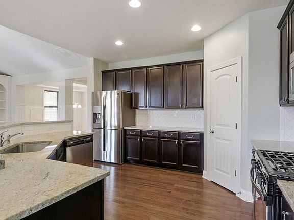 - Kitchen Features: Breakfast Bar, Cabinets Stain, View to Family Room, Stone Counters, Pantry Walk-In, Breakfast Room