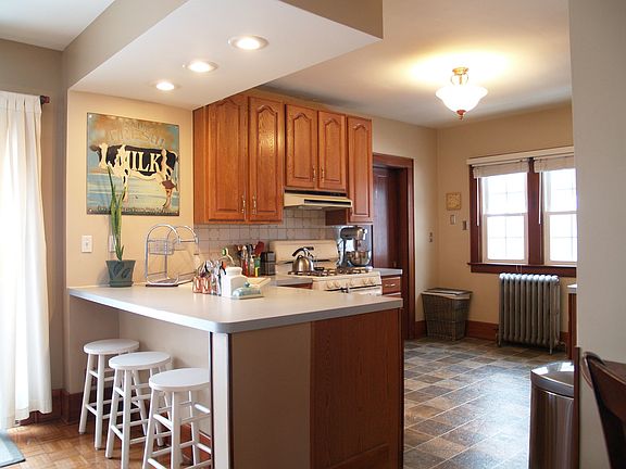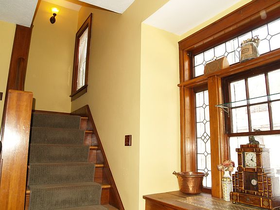 Charming 3 bedroom Colonial in great location! Stained glass windows and beautiful gumwood moldings throughout. Large foyer with hardwood floors to greet your guests! Beautiful French doors off foyer leading to living room with hardwood floors and den with French doors. Large eat in kitchen with breakfast bar and all appliances included. Pocket door between kitchen eating area to living for complete privacy. 2nd floor with 3 nice sized bedrooms, 2 with hardwoods. Full bright bathroom with skylight for natural light! Yard has large wood deck and shed. Basic 1 year home warranty included! Don't miss this charming home!