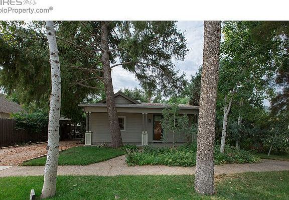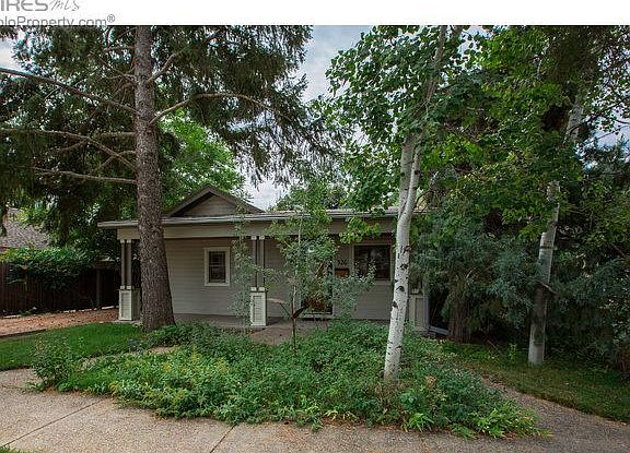 Cute two bedroom downtown Loveland bungalow with incredible private, park-like backyard including sprinkler system, aspen/cherry/maple trees, and a deck with planters and awning. Kitchen features a Wolf range/oven and all appliances are included! This home has lots of character and charm but also features modern conveniences like A/C, sunroom and some Pella windows. Detached garage/shed, wood-burning fireplace and more!
