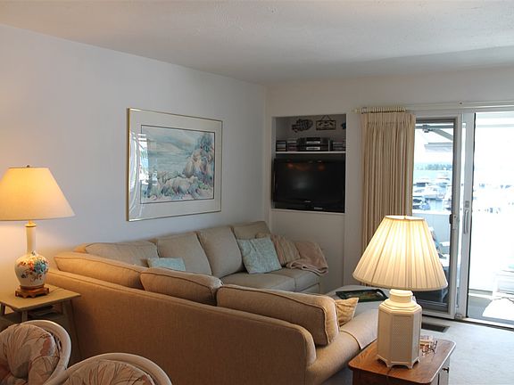 Enjoy beautiful waterfront views overlooking the harbor and yacht basin from this in-town Marina Village Condominium. Features include 3 Bedrooms, 3 Baths, updated kitchen, fireplace, and garage. Enjoy watching the boats come and go from the lovely front deck or the private backyard courtyard patio. Unit is offered mostly furnished. This desirable location is within walking distance of downtown shops, restaurants, marinas, and the beach.