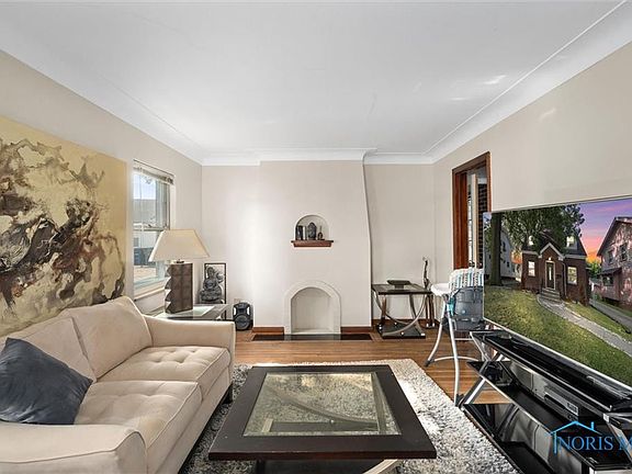 This 2-bedroom, 1-bath brick home, built in 1940, offers 1,028 sq. ft. of living space. The interior features original hardwood floors and distinctive cove ceilings. The updated kitchen includes modern countertops and tile flooring. Additional features include an enclosed back porch for relaxation and a full basement with painted floors and walls that could be used as extra living space. The low-maintenance exterior includes updated vinyl windows. The property offers a 2 1/2 car garage w/ a concrete driveway and automatic opener. The home is situated on a fenced lot providing privacy.