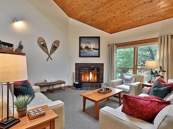 A rare opportunity at Trail Creek! This bright and spacious upper-level unit with ski-home access offers two bedrooms and two baths with a large loft allowing this property to comfortably sleep six. Details including vaulted pine ceilings and a wood burning fireplace create a welcoming space for relaxing and entertaining. An updated kitchen is outfitted with contemporary granite countertops and tile details with stainless appliances and cherry cabinets. This home’s easy-going style is enhanced by neutral carpeting, slate tile flooring and natural woodwork throughout. Features such as an ample cedar-lined storage space and a roomy elevated deck add flexibility to the use of the space.Nests thermostats provide Wi-Fi access to modify your environment. Enjoy the many comforts of this low maintenance mountain property. Killington is home to year-round recreational opportunities! Skiing, cycling, hiking and mountain biking – stay in top form as you participate in your favorite seasonal sports. In addition to taking in the local activities, everyone will love the convenience of the on-site Activity Center. Enjoy swimming and gaming as well as relaxing in the sauna and hot tub. Shuttle service provides access to the lifts, shopping and local restaurants. This beautiful unit is being offered as fully furnished, ready for use as your personal retreat or as a rental income opportunity. See attached list of updates and video tour. A unique property that won’t last!