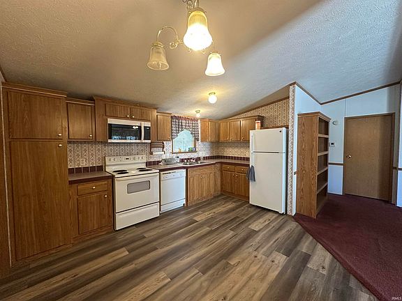Open concept 3 bedroom, 2 bathroom manufactured home. Large eat-in kitchen with multiple cabinets. Primary bedroom includes a nice size closet and a bathroom with a garden bathtub/ shower combo. One bedroom includes built in cabinets/ storage area. Convenient location close to multiple of Jasonville's businesses.