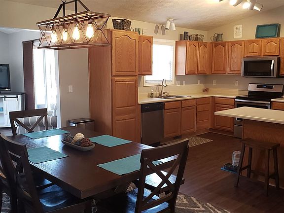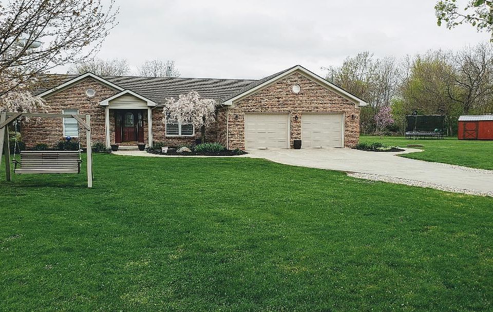 For sale a beautiful all brick, 3 bedroom, 2 bath home in Parker City and Monroe Central Schools that sits on just over 1 acre with lots of landscaping with perennial flowers and flowering trees. This house offers plenty of open living space with a vaulted ceiling and gas fireplace in the large open living room, dining room, and kitchen area. Just off the sunroom, there is a newly remodeled backyard with a large stone paver patio that houses an outdoor grilling and eating area, an outdoor refrigerator, and a stone wood burning firepit. It also offers a large pergola that give plenty of shade from the sun while you are enjoying your above ground pool with a new composite deck. This backyard oasis also offers plenty of flowers and stone landscaping and green space with additional seating and eating area all enclosed by a new wood privacy fence. The split floor plan allows for a large master suite with a tray ceiling that gives you a luxurious private master bath, which has a separate shower, a deep jetted tub, a large double sink vanity, and his and her walk-in closets. The house also offers an oversized finished 2 car attached garage with utility sink for those outside messes. There is also a pole barn that is fully insulated with a heated workshop and stairs leading up to a large loft for extra storage. The barn and garage doors have automatic garage door openers with keyless entry. In addition, there is a 12 ft by 8 ft storage shed that offers even more storage. The house has had many updates over the past couple of years. New vinyl wood plank flooring throughout the entire house installed in fall of 2019. New updated lights and ceiling fans installed throughout the main living area. New high efficiency gas furnace installed January 2020, with Ecobee smart thermostat, and backyard remodel completed in spring of 2020. This house offers many other features that make it a must see.