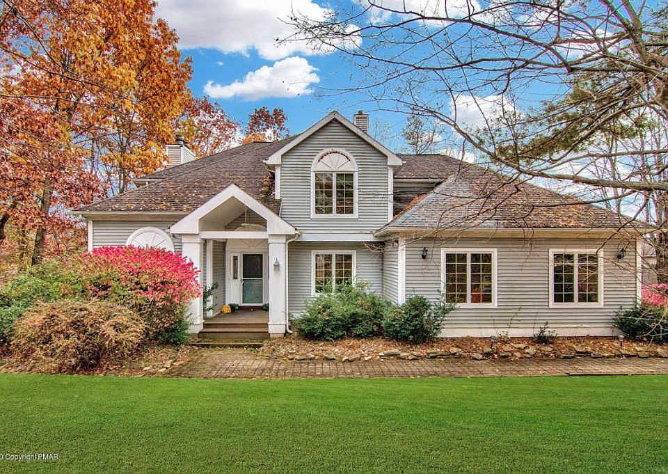 No tricks here! Now offered is this 4 bdrm 3.5 ba home with over 3600 S.F. of finished living space for $289,500 in the golf course community of Country Club of the Poconos! Opportunity abounds with a finished basement with family room with wet bar and wood burning fireplace, and full bathroom, that can make for great entertaining or mother-daughter set up. First floor features a stately 2 story foyer with marble flooring, open concept kitchen and living room with another wood burning fireplace and wet bar, office space, formal dining room, and powder room. Second floor features a large master bedroom with en-suite bathroom with double sinks and jetted tub. There are 3 more large bedrooms on 2nd floor with hall bathroom. Outside features multi-level deck and great views! See virtual tour
