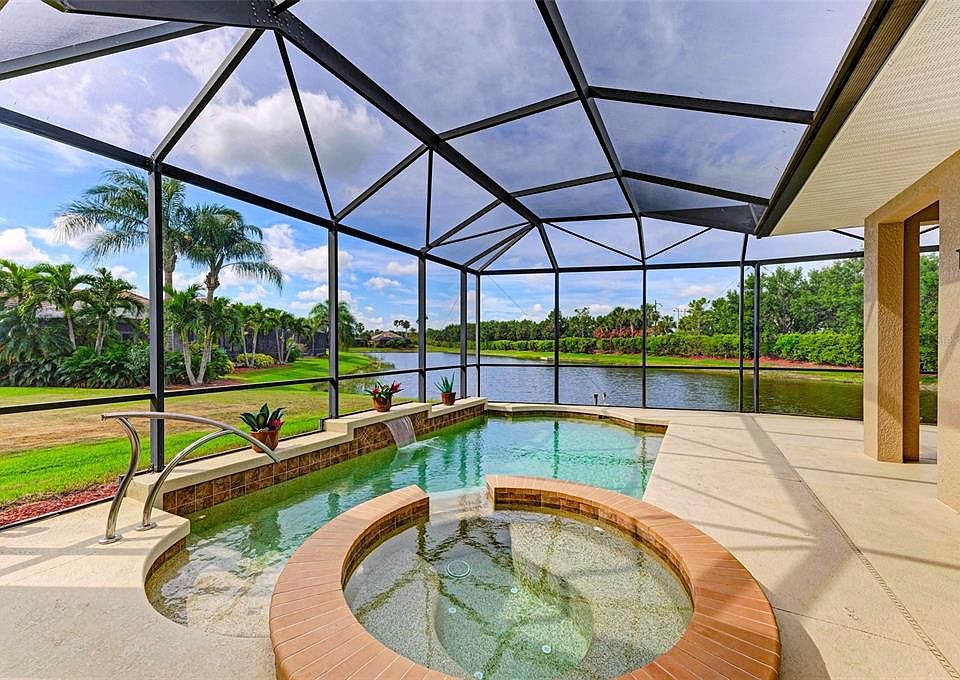 One or more photo(s) has been virtually staged. The only thing missing from this lovely home is the rainbow because it is the pot of gold just waiting for you! Where else can you have a GOLF-DEEDED MEMBERSHIP, LONG WATER VIEWS, CUL-DE-SAC lot, THREE Car Garage, POOL & SPA with 4 beds & 3 baths for under $800K? This lovingly maintained home is a blank canvas waiting for you to make it your own special Florida paradise. The OPEN floor plan is spacious and the view you get the minute you walk in is just stunning, get ready to be amazed. The original owners added plantation shutters, ceiling fans, custom lights and updated the refrigerator in 2020 and installed a new HVAC in 2022. The Kitchen boasts ample room to cook and entertain with granite countertops and stainless appliances. The pool and spa are perfectly situated to soak in and enjoy Florida's majestic sunsets while sipping your favorite cool beverage. The 4 bedrooms allow you to have more than enough room for guests as well as a home office or “man-cave”, the options are endless. So much potential awaits you here on this lovely, quiet street with fantastic neighbors in one of the best communities in Manatee County! River Strand Golf & Country Club is a friendly community with a 27-hole Arthur Hills designed golf course, 9 Har-Tru Tennis Courts, 8 Pickleball courts, 2 Resort-Style Pools, 6 Satellite Pools, Clubhouse with restaurant & social events, Community Center & 2 fitness centers in this luxury gated community with 24 hr. security & lawn maintenance. Convenient location to I-75, University Town Center, & beaches complete the package. River Strand Golf & Country Club More than a Community, It’s a Lifestyle. Room Feature: Linen Closet In Bath (Primary Bedroom).