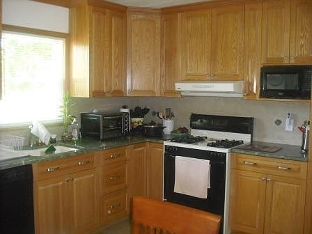 lovely 3 bedroom, 2 bath ranch home with main beam on steel, all renovated with custom kichen cabinets, with built in pantry, granite counter tops, NEW windows, roof, storage shed, full finishedwalk out basement with summer kitchen an full bath, 2-zone heat, master bedroom with 2 closets, backyard overlooking the park, hardwood oak floors thru-out, just bring your things an move in....