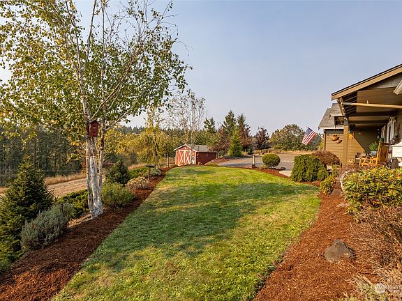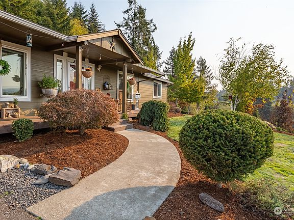 Welcome home to this lovely, well maintained, open concept home on 2.35 acres on a hill with fabulous sunset views from your new front porch. Extremely private with paved and gated drive and less than 5 miles from I-5, close to shopping/medical facilities, and just over an hour to Portland or Seattle. Enjoy the extra large patio in back which is also wired for a hot tub, great for entertaining/enjoying while deer stroll by. Home includes 3 bedrooms plus an office, new smart appliances, new heat pump, new water heater, and more. 16x24 shop for your toys, a full 50 amp RV hookup, firepits to enjoy, and over 30k in rock and landscaping, only the second time this home has been on the market, come see it before it's gone!