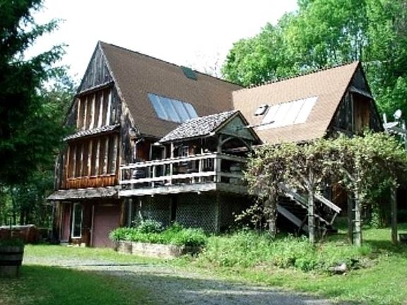 By A Murmuring Stream (8287) Catch the ambiance of this custom, one-owner 2-3BR/2+BA valley-view Chalet on enchanting rural site on 13.80 acres. Appealing residence enhanced by natural woodwork, hardwood flooring, plus a two-story living room, eat-in kitchen and partially finished walk-out basement. Fireside benefits, light and airy floorplan, work-at-home office. Useful loft, beamed and cathedral ceilings, skylights. wainscoting, gas heat. Garage, large view deck, large two-story barn. Refine to your needs. Cooperstown Schools
