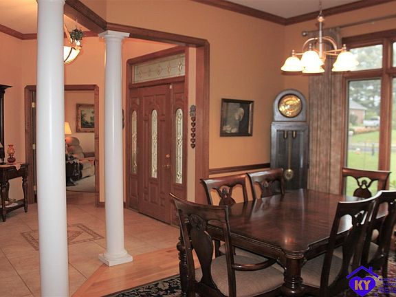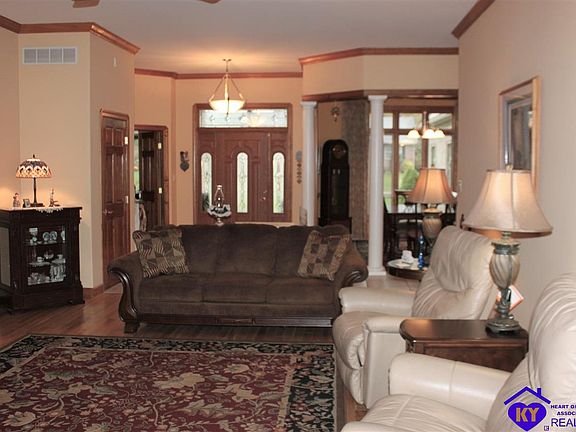 Beautiful custom built 5 bedroom brick home has garage for 4 cars and 10' ceilings through most of main level and 9' ceilings in finished walkout basement. Great room is open to entry foyer and formal dining. Lots of custom tile and wood floors throughout. You'll enjoy the huge three seasons sunroom with gas fireplace and plenty of area to entertain. Huge kitchen with abundance of cabinets, extra prep sink, granite counters, gas cook top, microwave and oven wall stack. Master bedroom suite has huge walk-in closet and private master bath with walk in shower and whirlpool tub. Main level laundry room with sink. Basement features: huge family & rec room areas, wide hall, full 2nd kitchen with all appliances, 5th bedroom, potential 6th bedroom w/no ingress/egress, 2 full baths, and a tandem 2 car garage. The concrete patio off basement is covered for all weather use. The extra building has a garage door and workshop area. New HVAC on main level in 2017 & basement HVAC in 2014. 2 new water heaters in 2013. New roof in 2014. See seller's disclosure #13 for list of improvements made since current owners purchased. On the other side of the woods in backyard is the Sports Park!