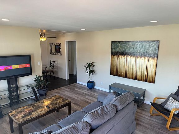 Newly remodeled living room! Amazing location!! Spacious 1 bedroom (king size bed), 1 bath (walk in shower) apartment on Main St. in downtown Huntington Beach. This neighborhood is so much fun to live in ! Just 4 blocks from the beach and walking distance from over 50 shops and restaurants. Enjoy the weather on your own private balcony with a view of the library and Triangle Park. There isn't assigned parking but there's a parking lot right by the apartments and plenty of free spaces in the neighborhood. The units don't have washer and dryer but there's a really nice laundry mat just down the street. Pets accepted with additional deposit. The unit is also fully furnished with everything you might need or we can do non-furnished if it's a year or longer lease. Gas and water paid. A lease with us can be anywhere from shorter term (30 days or more) or a longer lease (up to a yr). We are pet friendly, we just ask for an additional $250 non-refundable deposit.