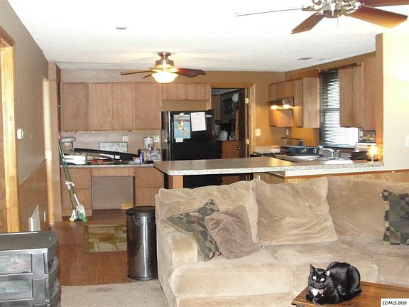 Own your own home cheaper than rent!! Appliances included. Nice home with oversize 26x34 garage finished inside Rented on month to month basis. Electric HWH- Jan. 2020. Older furnace just had approx. $500 repairs-located in attic in front bedroom, circuit breaker box in back bedroom closet. Basement crawl space access on deck to right of back door has a sump pump. Large shed. Garage has a bathroom and propane heater, drywalled and finished very nicely inside-finished area is raised 3 feet from garage floor level for plumbing and is wood decking, approx $6,500 worth of kitchen cabinets setting in garage that are negotiable. The electric garage opener is unhooked & no remotes, insulated with spray foam.