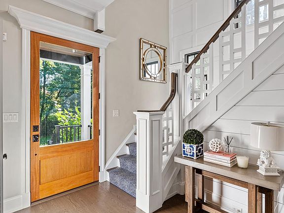 Town and Country living in Saint Davids. Better than new construction in a premier location on Philadelphia's Main Line. This home offers privacy, along with unbeatable convenience. Mature trees surround this super chic new home. You pull down a private lane off of King of Prussia road, and you are immediately wowed by the serene, quiet setting. Exterior is stone and siding, with a Flagstone front porch. 2 car garage and one car open carport lead you into a mudroom with brand new powder room and built in cubbies and storage and shiplap walls. The interior millwork is very updated and fresh, this home is not what you will expect. Open concept floor plan focuses on the kitchen with a 10 foot island. Top of the line appliances and quartz countertops. Custom Century Cabinets, Thermador appliances, including wine refrigerator. Walk in pantry, custom trim throughout, Coffered ceilings, modern staircase with windows, Beams in the family room, multiple barn doors, custom transoms and many more fabulous details. There are 4 bedrooms on the main level and 3 full baths along with 2 finished lofts with full bathrooms, that could be used for bedrooms, home offices or family rooms. Main bedroom suite has a covered porch connected, that makes it feel like a retreat. This home is one you need to see to experience! Located minutes from the Radnor train station, convenient to the city, this location is a real winner! Walking trail next door to the cul de sac street also called Montgomery Lane, for social gatherings or walking into Wayne. Very close to Radnor train station and Radnor Elementary school! Home also has EV charger for electric cars and SUV's.