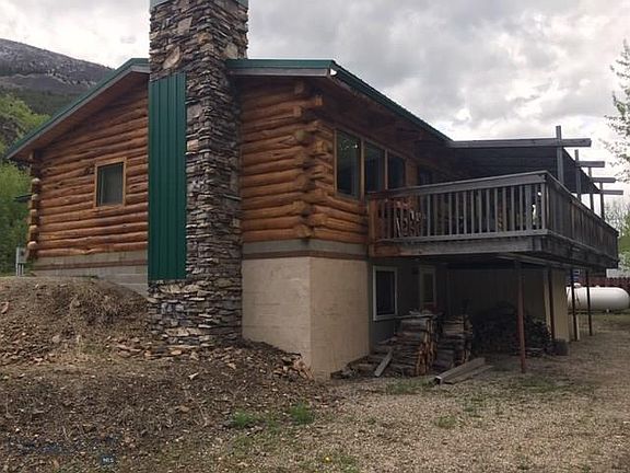 You are going to love this home in Neihart, Montana. Imagine coming home to a log home and warming by the fire in your beautiful full stone fireplace while enjoying the look of handsome real wood interior panels. From there, retreat to your big covered deck with sounds of the creek and views of your fenced in back yard and the creek. Upstairs, find a full bathroom and master bedroom. Go downstairs and take in a sauna next to your full bath, additional bedrooms, a recreation room and a door to the back yard. Neihart has all that you have been looking for in Montana. Showdown ski resort is a few minutes away and snowmobile trails are nearby. You are also in close proximity to great fishing and hunting in the National Forests that surround the area. This is one half of a duplex. The other side is also available separately or buy both! Steel roof. Covered front parking. Easy access off the highway. Near town. Only an hour drive to Great Falls. New, owned propane tank passes to buyer.
