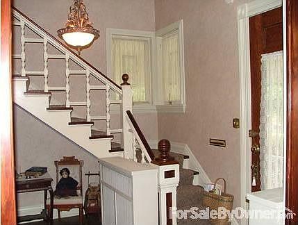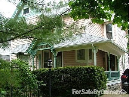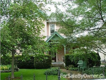 Beautiful victorian 2 story in heart of town, well maintained property w/ 2 tier deck/ paver patio and long paved drive surrounded by privacy fence in back/ wrought iron fencing in front. Formal dining room/ parlor w/ pocket doors. Back-to-back fireplaces in family/ living rooms. Oak flooring downstairs- solid wood doors throughout, all w/ decorative hardware. Plenty of closets. Large remodeled eat-in kitchen w/ quartz counters- spacious pantries, most appliances included. One bath on each level, both remodeled w/ clawfoot tub/shower combo up, close to large laundry room. East-facing sunroom @ end of hallway upstairs, incl. front/ back staircases. Full attic space, inside accessible, plus loft storage above detached garage. New roof/ gutters. Vinyl sided, keeping wood decoration to maintain character-wraparound front porch. Efficient steam heat w/ newer boiler and updated electric. Lots of perennials, highlighted by landscape lighting. Move-in ready.Additional property info: http://www.forsalebyowner.com/listing/E561C?provider_id=28079