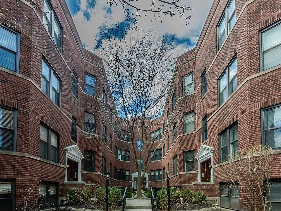 Bright 2BED/1BATH condo overlooking beautifully landscaped courtyard in fantastic location just one block from the lake. Many updates throughout this spacious condo. Large sunny living room with decorative brick fireplace with built in shelving. Kitchen (2013) with stainless steel appliances, granite counters and tile backsplash. The oversized separate dining room is perfect for entertaining. Both bedrooms are generous in size - large enough for king sized beds. Other features/updates: Bathroom rehab (2018), electrical upgrade (2013), Pella windows, Elfa closets, refinished hardwoods (2019), freshly painted (2019), large storage in basement. Investment friendly. Easy street parking. Prime location: Lake Michigan, South Blvd Beach, parks, bike trail, Northwestern, CTA and Metra stations.