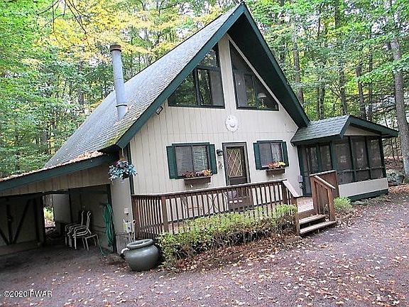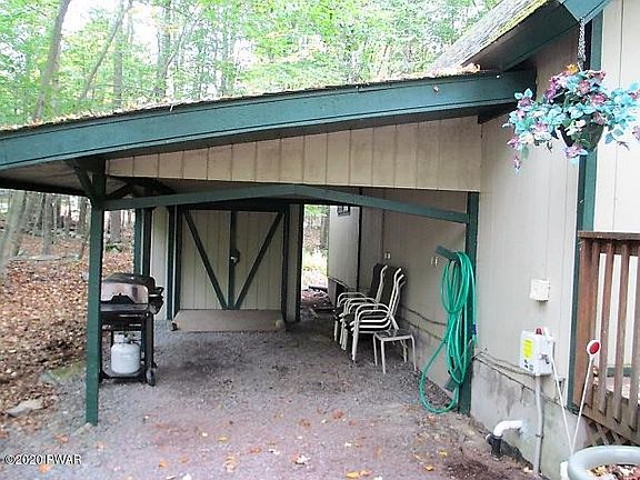Take a look at this nice Chalet in The Hideout, a ''Gold Star'' awarded, four season, gated Pocono Community. This 3 Bedroom home features a sizeable screened-in porch right off the dining room that accesses an open deck for your BBQing! It also has a car port on the side and storage shed for all your tools and toys! Plenty of parking so bring up the friends to enjoy the beautiful country air., Beds Description: 2+Bed1st, Baths: 1 Bath Level 1, Baths: 1 Bath Level 2, Eating Area: Dining Area, Sewer: WS Comm Central