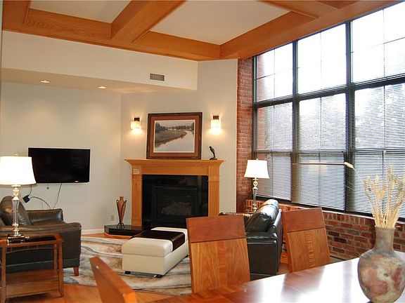 Wonderful city living allows you to walk to parks, museums, restaurants, festivals & shopping and Boulangerie, Freedom of Espresso and the Creek Walk entrance are only steps away! One of the larger units, this tastefully furnished two story condo has so much to offer - soaring ceilings, walls of windows, exposed brick, gleaming hardwoods, corner fireplace in open main floor living/dining room and kitchen, private patio perfect for entertaining, container gardening and relaxing, guest suite with large bath, master suite with spa-like bath including two sinks, separate shower and jacuzzi tub, private laundry just off the kitchen, large storage closet in foyer under the stairs as well as two parking spaces included - one in underground garage and one in the outdoor lot.
