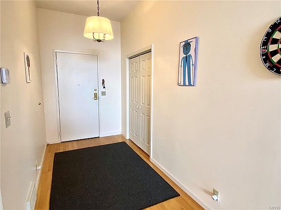 Upscale and distinguished downtown living in Plum Court - beautifully renovated and secure building in the heart of Franklin Square near highways, downtown and hospitals. Large foyer with oversized custom-fitted closet opens to the kitchen with center island/breakfast bar, JennAir range, stainless steel refrigerator & dishwasher and microwave. Great open floor plan includes a dining area and a great room with gleaming hardwood floors bathed in light from the two walls of windows that capture the stunning city views and great sunsets. The master suite has brick accents, wall of windows with an extra layer of blinds, an amazing custom-fitted walk-in closet and private bath. The den or office could also be used as a guest/second bedroom (no window). The in-condo laundry has been upgraded with nearly commercial grade size LG washer and dryer. The lovely half bath also has an oversized custom-fitted closet for additional storage. Add the convenience of a storage unit and deeded parking space in the underground garage and youre ready to make the move Downtown. Walk or ride your bike (or rent one!) to lunch, coffee, nearby parks or work the Creekwalk is just outside your door.