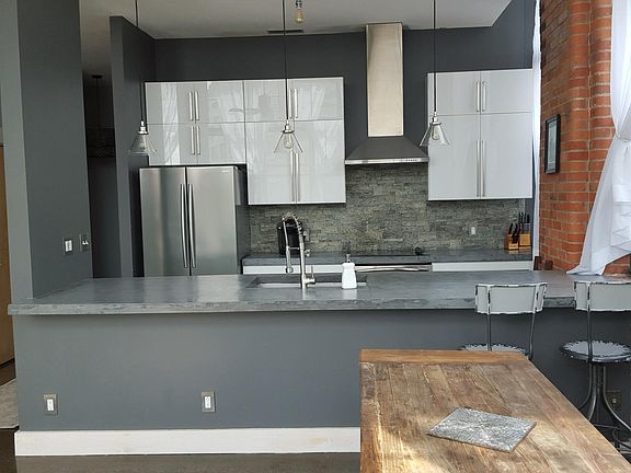 3rd floor corner unit 1000 s.f. updated industrial style 1 bed 1 bath available for rent starting June 1st (can be flexible on move in date). Rent INCLUDES COVERED GARAGE PARKING SPACE and large storage locker plus additional parking on surface lot. New wall hung 60" TV will stay if desired. Coveted quiet corner unit on third floor with 12 ft ceilings and walls of windows providing lots of sun great air flow and great views! Extra secure building within the heart of safe and gorgeous historic Franklin Square. Quiet neighborhood but still walkable to all great spots in the city (Armory Hanover, Clinton Sq, Destiny USA) and seconds from I-81/690 on ramps. Private laundry in apartment as well. Utilities and Cable/Internet not included. Cheap utilities can provide statements. Minimum 1 year lease. 1st month plus security deposit due upon signing. Please call to schedule a showing. Dogs/cats are okay. Tenant pays for utilities and cable/internet