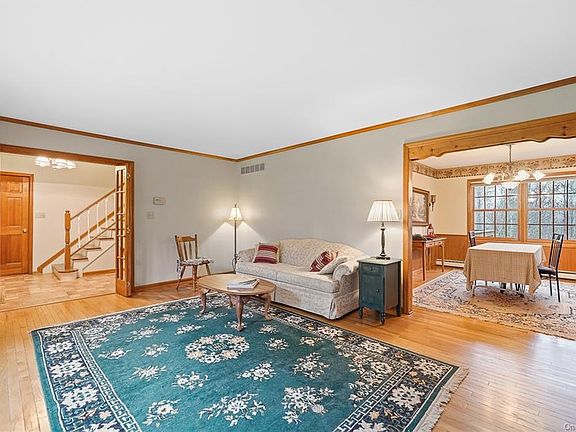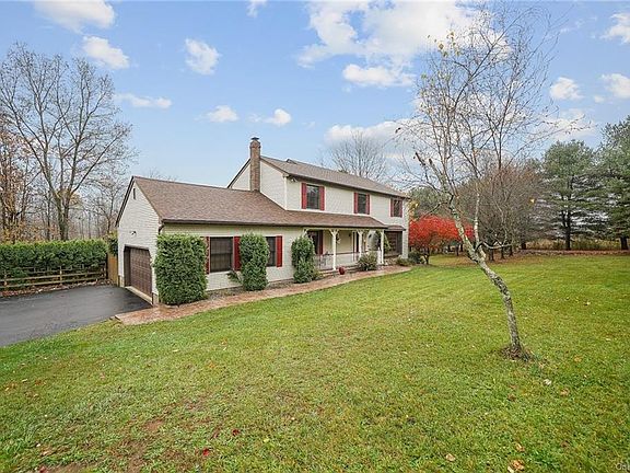 Better than new! This well kept 4 bedroom 2 1/2 bathroom colonial is sitting pretty on 2.6 acres. The first floor features a kitchen with stainless steel appliances, corian counters and doors leading out to the 2 tier deck, formal dining room, bright and sunny living room, family room, sunroom and a half bathroom. Upstairs there is a spacious master suite with a walk in closet, master bath with a steam shower and a sunroom. There are 3 other good sized bedrooms, a full bathroom and a laundry chute. This home has hardwood floors, raised panel solid wood doors, central ac & central vac. There is an unfinished basement and a 2 car garage. The rocking chair front porch is perfect for sitting and relaxing. The backyard is made for entertaining with an above ground pool, custom deck with built in seating & motorized awning. There is even a separate driveway to park an RV. Don't miss out on all this home has to offer, make this your new home today!