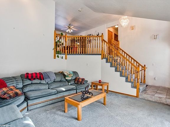 The Upper and Lower Wolf Trails (forest service land) are right out the backyard gate. What a find! The welcoming open concept family room with it's vaulted ceilings is spacious yet intimate Floor to ceiling windows are unusual and pleasing. Right upstairs are the dining room and kitchen. Three bedrooms are on this floor too. Propane fireplace in the downstairs rec room. Shopping and schools nearby. DSL and fiber are available in the area - hookup fees will apply.