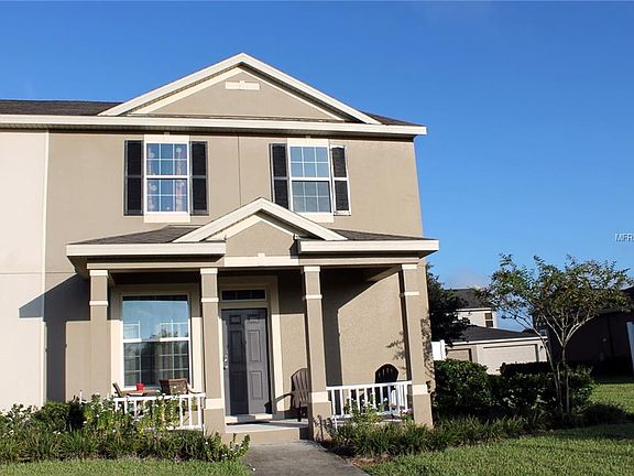 JUST REDUCED,,, Relocated to NY forces the original owner to sacrifice this upgraded, end unit townhouse. Sit and relax on the covered front porch, , The home is equipped with 'Smart Technology'., open/close the garage door and control the thermostat from your smart phone. Entry door smart lock does not convey., Upon entry you are in an open Living Room, Dining Room and Kitchen, all done with large ceramic floor tiles. The kitchen offers Corian on the Counter tops, the breakfast bar and on the food prep Island. The roomy 42 inch cabinets are finished with crown molding. There's a sliding glass door leading from the kitchen to a private - PVC fenced patio area. There's a half bath between the Kitchen and the rear entry two-car garage. The Master Bedroom is on the 1st floor. The second floor consists of two good sized bedrooms, a full bathroom and a large loft area. Ryland Homes, the builder, offered an optional 4th bedroom in the loft area. Living at Waterside Pointe is like living at a resort. From the palm tree lined- gated entrance to the large clubhouse, a swimming pool with the largest water slide in the area, to open areas along a pond and a 220 acre lake, it's Central Florida living at its best ! The clubhouse area also offers an air conditioned fitness building. Other amenities include: a tennis court, a basketball court, soccer nets and a private boat ramp to the 220 acre lake. RV, Boat or Trailer owners can take advantage of an on-site, secured storage facility. Welcome home !