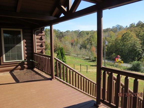 Blue Ridge Log Home on 5.38 acres. Large open living, dining and kitchen. Nice deck off kitchen. Beautiful wood floors and wood ceilings. 6x9 pantry. Master bedroom with walk in closet, master bath and exit to back deck. Office has it's own outside entrance. Nice covered front porch and large back deck. 3 separate pastures, 3 stall shed plus pony shed.Exterior had weather preserver & stain 2017.