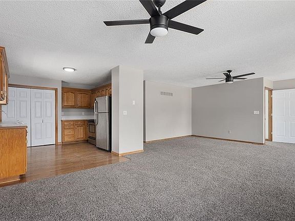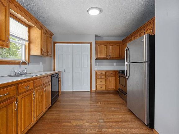 This home is a must see with three bedrooms, three full bathrooms, and two car garage!  New carpet, fresh paint, and updated lighting welcomes you into the open floor plan main level with ample natural light.  Main floor continues with a large hall bath, primary bedroom with ensuite full bath, and additional bedroom with access to deck.  Basement offers convenient walkout with 3rd bedroom and 3rd large bathroom.  Bedrooms and bathroom are spacious and inviting.  Basement also includes storage area and storm shelter.  Home is conveniently located near business district and schools!  Schedule a showing today!