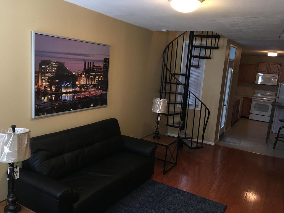 Fells Point Fully Furnished One Bedroom Townhouse * * * * * * * * * Great location! Just steps from everything! (Supermarkets, banks, restaurants, bars, coffee shops, shopping, waterfront, gym, etc.) One block from the Square in Fells Point. One block from The Broadway Market, and just a few blocks from Thames St. and the water. This is a furnished two story small town house. Best suited for a single occupant. This is a non-smoking house with open living room and kitchen spiral stairs washer and dryer wood floor exposed brick private outdoor patio very clean newly renovated. $1390. a month Rent is responsible for water and electric. No smoking in unit.