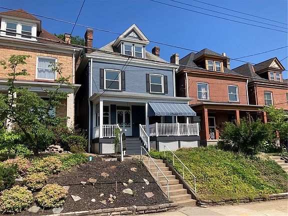 Beautiful brick home in the wonderful East End neighborhood of Point Breeze. High ceilings, large windows, classic fireplaces, and beautiful staircases standout in this light and spacious 6 bedroom home. Fantastic and welcoming front porch is contrasted with a semi-private, serene back yard. The main level offers a stunning entryway, a 1/2 bath, handsome LR with natural gas fireplace, a grand dining room with built-ins, and a kitchen which provides access to a rear staircase and the 1st floor laundry room. New hardwood on the main level and front staircase. The 2nd level has a generous landing centered between 4 equally-sized bedrooms, an updated full bath, and new carpeting. The 3rd level offers 2 very large BR's with room to add another full bath. Freshly painted on the main and 2nd level. Dry basement. Two blocks from Frick Park! Short distance to Mellon Park, Bakery Square, and the local biz district. Very close to the bus line and an easy commute to Oakland/Downtown Pittsburgh.