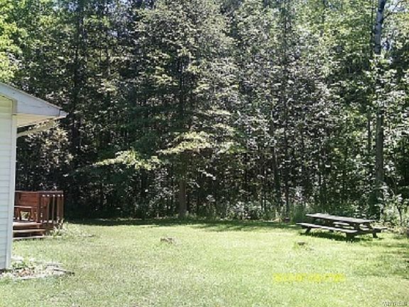 Nearly 5 acres of wooded privacy with home sitting 300' off the road. New roof, skylights, carpet, flooring, paint, some fixtures, hot H20 tank, counter tops. Large living room could be divided to make a 3rd BR. Kitchen lower cabinets have rollout shelves! Remodeled master bath has cedar ceilings, master BR has attached screen room to enjoy the wildlife in your back yard. 2nd BR is at the other end of the house allowing for privacy. Basement crawlspace is 4' high. Scribner Rd. is a shortcut to nowhere so very little traffic while you stay conveniently located to either Bflo or Roch. Whether starting out or downsizing, this sweet ranch will suit your needs. SOLD IN ONE DAY!