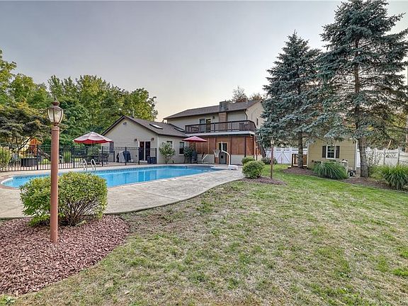 FABULOUS TWO STORY HOME IN MILTON OFFERING MULTI GENERATIONAL LIVING - Don't miss an opportunity to own this 4 Bedroom and 3 Bath home offering nearly 3300 Sq. Ft. including a beautiful 1050 Sq. Ft. 2nd floor offers a second Kitchen with a spacious fenced backyard with gorgeous 36X18 heated in ground pool in a private setting! Expect to be impressed this home features beautiful updates & quality upgrades through out - Mahogany porch leads to the 1st level an open living plan with designer Kitchen with Kraftmaid cabinets, Corian counter & stainless, Living/ Dining Room & Family Room with cathedral ceiling, skylights & fireplace. Primary Bedroom with cathedral ceiling & skylights, gorgeous Bath with oversized WI shower, full ceramic Bath & 2 Bedrooms. 2nd level dual access with entry thru rear deck overlooking the pool & yard,Living Room, Eat in Kitchen, Full Bath with 2nd washer/dryer, Bedroom & Den/Office. Flexible floor plan with unlimited possibilities!