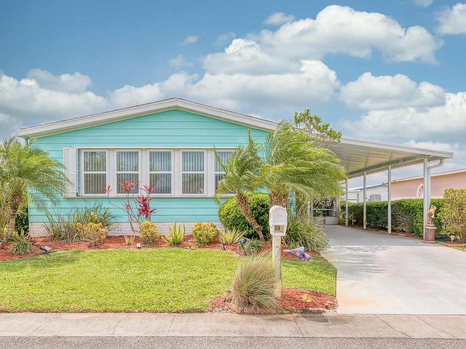 ACCEPTING BACKUPS!! Motivated Seller offering to pay $3,000 towards Buyer's Closing Costs!! Don't miss this spacious, meticulously maintained 2/2 doublewide home in the highly sought-after Hollywood Estates, 55+ community. You OWN the LOT, not lease! Many Updates to this charming home including Updated Paint , new front Windows, Quartz Kitchen Countertops, added Countertop/Barstool area, Laminate Flooring, partially updated carpet, Accordion Hurricane Shutters, and more! With almost 1,600 Sq Ft of living space, additional Storage Area and Screened-in Porch - this is a rare find! Centrally located and close to shopping, restaurants, golf, Melbourne Int Airport, I-95 and the beach!