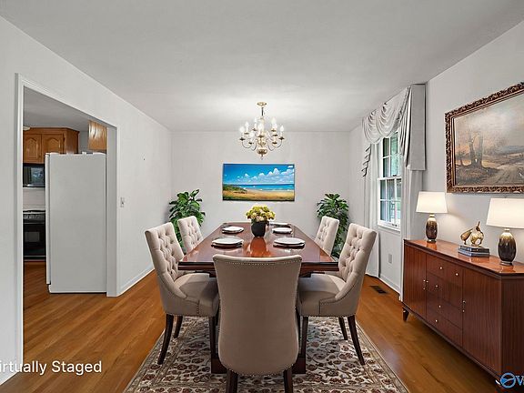 Comfort and convenience in a classic full-brick rancher set on a spacious corner lot. Enjoy a detached 2-car garage (24' deep) and a covered back porch with patio extension, perfect for relaxing or entertaining. Generous eat-in kitchen ideal for accommodating holidays or homework. Living/dining room plus den with hardwoods, bay window, & large laundry. Just minutes from Whitesburg Drive, Airport Road, and the Martin Road entrance to Redstone Arsenal, this property blends everyday functionality with excellent proximity to work, shopping, and dining. Leafguard 2023, water heater 2016, new vapor barrier, Termite bonded by Cook's. Sewer outflow has been replaced as well. Floored attic storage.