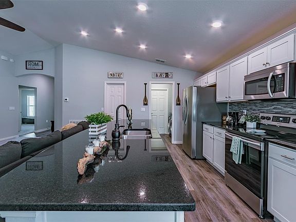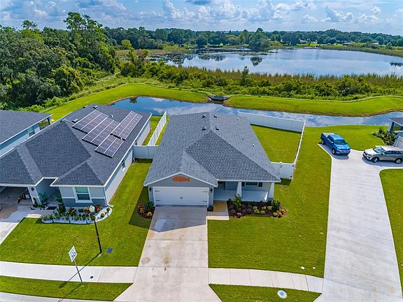 BACK ON MARKET!! BUYER FINANCING FELL THROUGH! APPRAISED ABOVE LIST PRICE! THIS Brand-new Almost! Built in 2020 this Highland Parker model home is designed for the buyer that is looking for upgrades without the wait! This seller took all the extras every buyer would want! As you walk through the upgraded all Glass Front Door you will notice an open living area with volume ceilings and a gathering room every family member will love and your visitors will never want to leave! Next you will notice the KITCHEN! Hold your breath this is everything you would design yourself: Pearl granite kitchen counters, cafe/nook, counter-height bar, shaker-style cabinets, stainless steel under mount sink, stainless steel smooth-top range, over-the-range microwave, quiet-operation dishwasher. And a Walk-In Pantry that makes any "club member shopper" salivate!. Lead past the dining area and you will find your upgraded French doors with incase blinds leading you to your outdoor living on your screened Lanai . The owners retreat, well, hold the phone: garden bathtub WITH jacuzzi jets, a walk-in wardrobe, dual vanities, a decorative tiled shower, and a convenient linen stack. 3 other large bedrooms for all your guests that will never want to leave! Convenient drop zone from the garage and inside laundry room. Speaking of the Garage, the sellers added the Pull down ladder so you don't have to. For your Florida lifestyle outside, the sellers added : vinyl 6 ft fence with LED lights on caps on sides and aluminum 5 ft fence on back so you can enjoy your water view and Florida friendly landscaping with an irrigation system. Other upgrades and features are: Bronze hardware throughout the whole house, energy-efficient R-30 insulation, foam-injected block insulation, double-pane Low-E windows, and a programmable thermostat. Energy-efficient LED recessed lighting, Mohawk stain-resistant carpet Custom-fit 2faux wood window blinds. *buyer to verify new taxes with county*