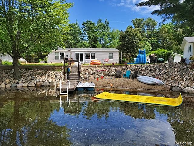 Brand new modular home has a 4 foot cement crawl with a permanent foundation located on Secord Lake! This little piece of paradise features a stamped concrete approach and patio, professionally installed sandy beach and hardscape at lakefront which is located in the no wake zone which is safe for swimming and other water sport activities. This home offers beautiful laminate flooring throughout the home, spacious kitchen and living room great for entertaining, 3 bedrooms and 2 bathrooms. Amish built 2 car detached garage conveniently has a 2 bedroom/1 bathroom living quarters located on the second story great for visitors. Additional upgrades include R-22 Floor, R-32 Roof, 2x6 exterior walls w/ R-19 insulation, installed 40 amp Air Conditioning Quick Disconnect, brand new well and septic, brand new appliances, and automatic sunsetter awning over patio. Home is ran on electric and home can also be ran on natural gas. This home is a must see!