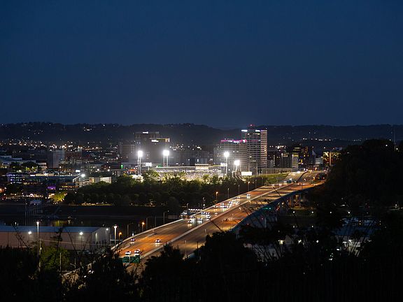 - View description: City, Mountain(s), Water