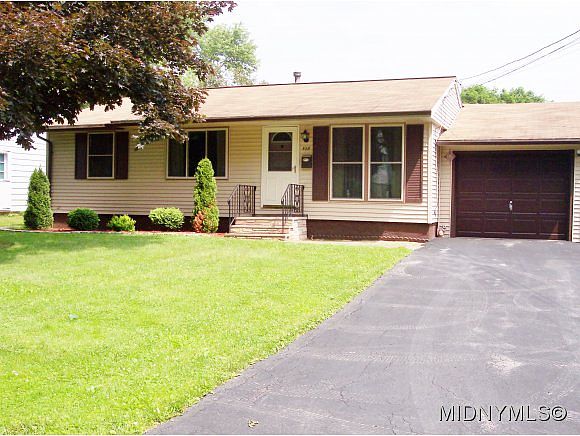 Great condition 3 bedroom 2 bath ranch w/2 car deep attached garage and nice yard.Bedroom addition off back full bath. Updated windows, siding, roof, furnace, central air, AND FULL BASEMENT and more.