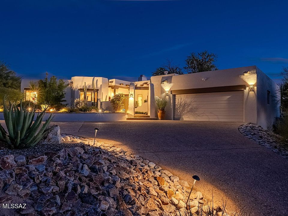Perched high on a hilltop in the desirable Flecha Caida community, this meticulously maintained Southwestern 2 bedroom-2 bath home w/den and bonus studio/workshop offers breathtaking tri-mountain views. Designed by an architect for personal use, this home boasts timeless charm with durable concrete block construction and a cozy fireplace. Every window frames stunning views of the Catalina, Rincon or Santa Rita mountains, creating a seamless connection to nature. The bonus studio off the garage, has both heating and cooling making it perfect for a creative retreat or even guest quarters. Enjoy serene desert evenings by the pool, taking in the unmatched beauty of Tucson's landscape with city lights, and enjoy your morning beverage off the front patio with breathtaking mountain views.