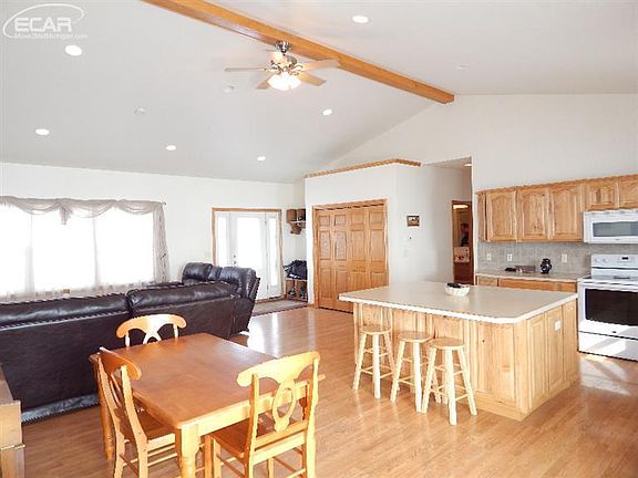 Country ranch on 2.5 acres has a beautiful, open 300 acre view. Open floor plan with cathedral ceilings, huge island, hickory cabinets, many recessed lights, oak trim and solid oak doors through out. Anderson windows, almost 1800 Sq. Ft. 3 bedrooms, 2 baths, and 1st floor laundry. Great home for $179,900.