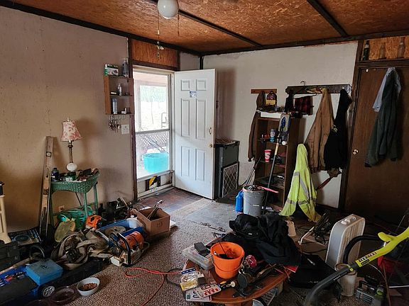 Small four room home with a 25 by 25 detached garage and other out buildings. Home has electric furnace and outside wood stove for heat.