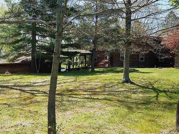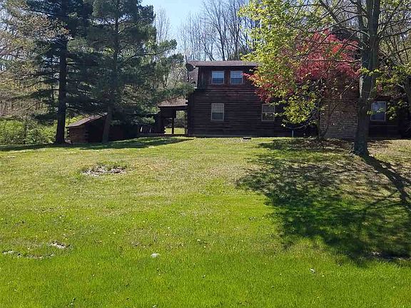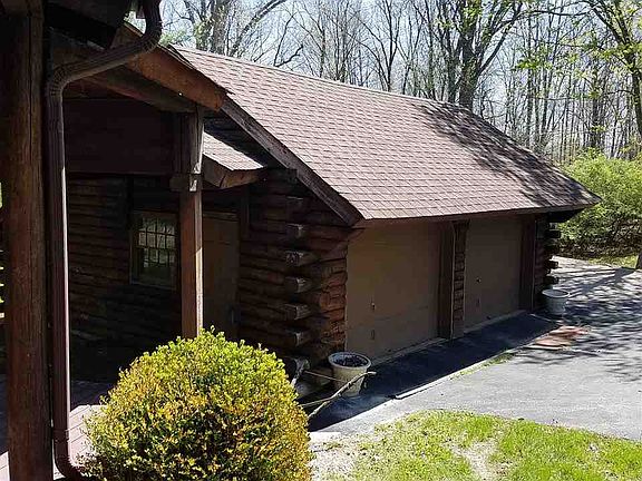 REDUCED-Estate Sale 1.5 Story Log Home Approx 2 Acres, Detached Log 2 Car Garage, Full Partially Finished Basement, 2 Bedrooms+Den, 2 Full Baths, Granite Island Kitchen, Stone Wood Burning Fireplace, Open Loft, Vaulted Log Ceilings, Front & Side Covered Porch, Paved Driveway w/concrete parking pad, Treed Lot, Public Water/Septic, Structural Eng Report Recommends Repair-$30k-$50k, Cash Only offers