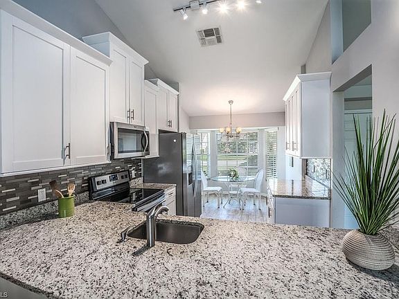 Welcome to Queen's Park recently remodeled lakefront home with Southern exposure! Gourmet kitchen with all wood self closing cabinetry, newer stainless still appliances, mosaic glass back splash and granite countertops! Both bathrooms feature granite tops, newer cabinets and floor to ceiling tile in the shower/tub! Not to mention brush oak wood ceramic flooring in all common areas and plush carpeting in bedrooms. 15-SEER A/C unit is less than 3 y.o. Lakefront lot sits in a quiet cul-de-sac and has a fresh landscaping for ultimate curb appeal! Come and see!