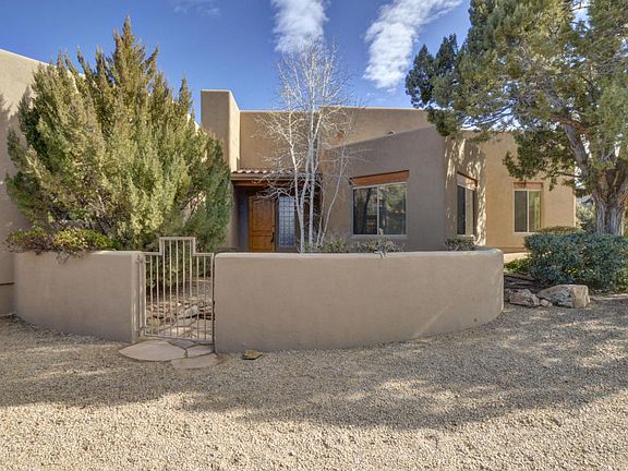 Amazing custom home in prestigious Inscription Canyon Ranch built by John Benson of Evergreen Home available for sale for the first time since construction in 2001. Spectacular location, floorplan design and designer appointments! This amazing home has so many wonderful attributes included in the secluded and manageable 2265 sqft main home as well as an additional free standing 318sqft studio on ~1.01 acres with mature trees and striking Santa Fe style architecture. Enter home through a gated courtyard to soaring ~14 foot ceilings with huge windows gracing the home with abundant natural light. Simple and elegant corner Kiva style gas fireplace is the perfect accent for this lovely open room. Split floor plan, 3 bedroom, 2.5 bath home with formal dining area. An attached oversized two-car garage plus a detached 988 sq. ft. oversized three-car garage and workshop with two post auto lift provide ample space for the car enthusiast and hobbyist.